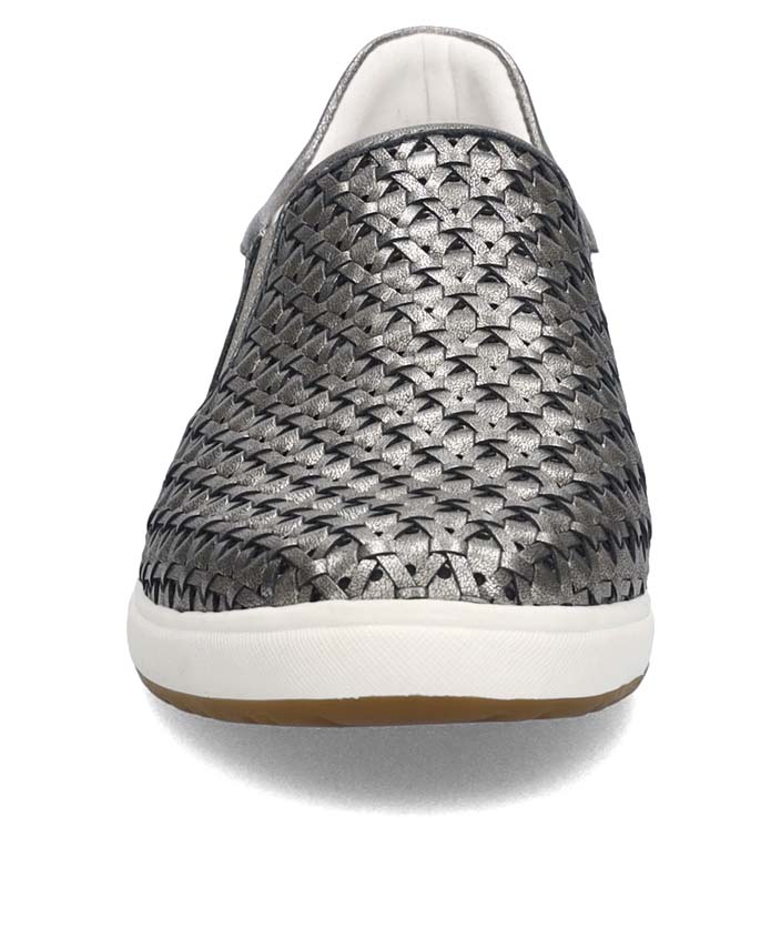 Entdecke den Caren 72, einen Damen Slipper, der durch sein geflochtenes Kalbsleder besticht. Dieses Design verleiht dem Schuh einen einzigartigen, modischen Look, der sich perfekt für jeden Anlass eignet. Die elegante Platinfarbe sorgt für ein stilvolles Auftreten und lässt sich vielseitig kombinieren.