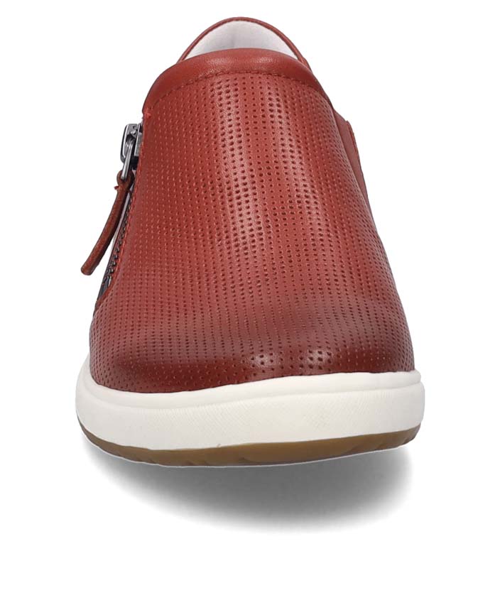 Entdecke den Caren 22, einen Slipper, der Eleganz und Komfort perfekt vereint. Das hochwertige Kalbsleder in der auffälligen Hibiscus-Farbe verleiht diesem Schuh eine besondere Note. Der seitliche Reißverschluss sorgt nicht nur für einen modernen Look, sondern auch für ein einfaches An- und Ausziehen.
