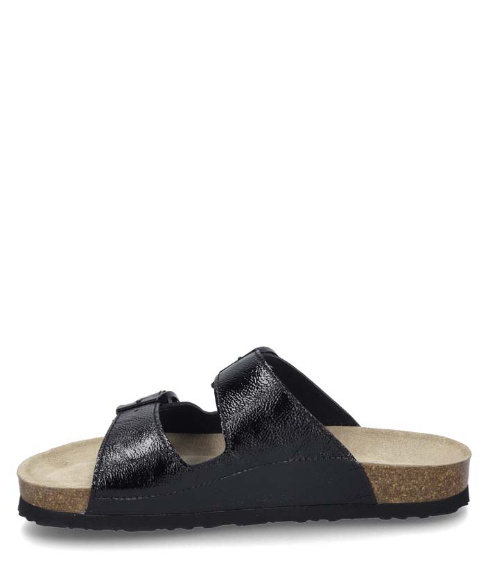 Entdecke die perfekte Kombination aus Stil und Bequemlichkeit mit unserer Hermine 06 Sandale. Diese elegante Sandale in klassischem Schwarz ist ein Muss für jede modebewusste Frau. Das glänzende Lackleder verleiht ihr einen edlen Look, der sich sowohl für den Alltag als auch für besondere Anlässe eignet.