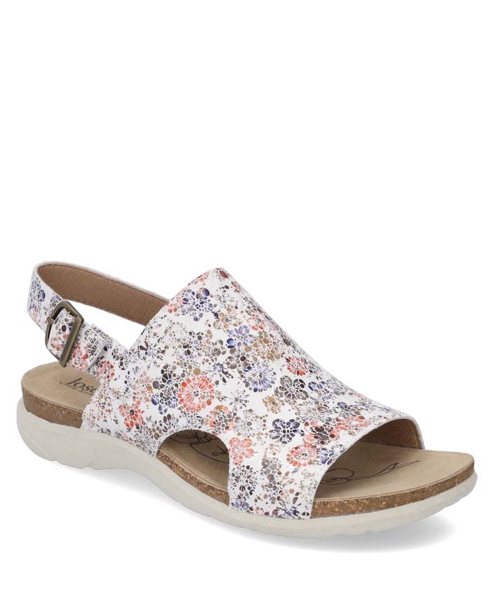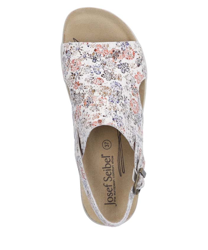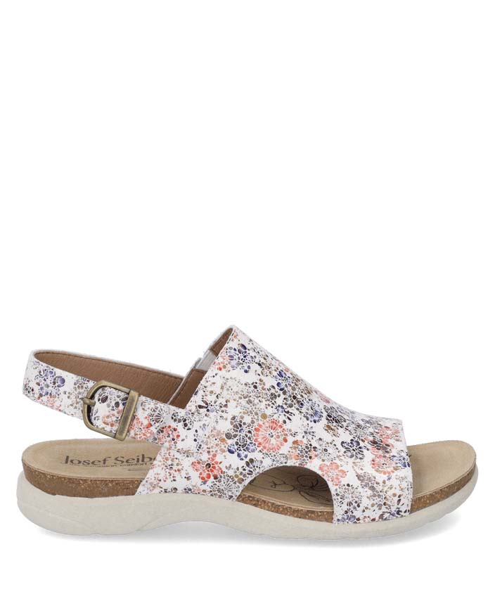 Entdecke die Riley 07 Sandale von JOSEF SEIBEL, die mit ihrem floralen Muster auf weißem Hintergrund einen Hauch von Eleganz in Deinen Alltag bringt. Diese Sandale ist nicht nur ein modisches Highlight, sondern auch ein treuer Begleiter für jeden Anlass.