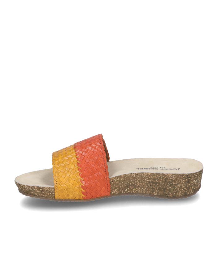 Erlebe den Sommer in seiner schönsten Form mit unserer Tonga 69 Sandale in der lebhaften Safran-Kombi. Das geflochtene Obermaterial aus Leder in warmen Orange- und Gelbtönen verleiht jedem Outfit einen frischen und stilvollen Akzent. Diese Sandale ist ein echter Hingucker und bringt Farbe in deinen Alltag.