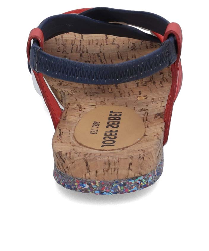 Entdecke die farbenfrohe Welt der Henriette 01 Sandale von JOSEF SEIBEL. Die bunten, überkreuzten Lederriemen in Rot, Blau und Weiß verleihen Deinem Outfit einen frischen und lebendigen Touch. Diese Sandale ist ein echter Hingucker und perfekt für den Sommer.