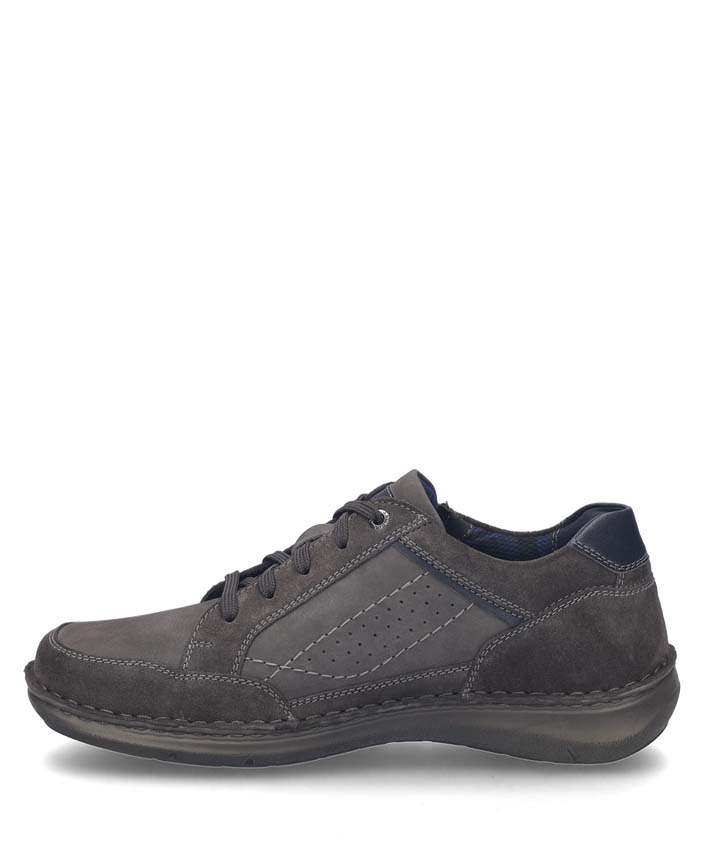Erlebe mit dem New Anvers 11 von JOSEF SEIBEL eine perfekte Kombination aus Stil und Bequemlichkeit. Der Halbschuh in der eleganten Farbgebung granit-kombi ist speziell für Herren konzipiert und bietet durch seine hochwertige Verarbeitung aus Rindsleder eine beeindruckende Langlebigkeit. Die feine Schnürung und der praktische Reißverschluss sorgen für einen optimalen Sitz und erleichtern das An- und Ausziehen.