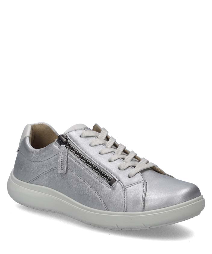 Entdecke den Megan 01 Sneaker von JOSEF SEIBEL, der mit seinem glänzenden, silbernen Leder einen modernen und stilvollen Look bietet. Dieser Sneaker ist ein echter Hingucker und verleiht jedem Outfit das gewisse Etwas.