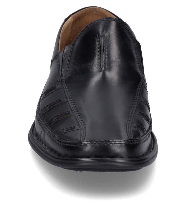 Mit dem Steven 12 von JOSEF SEIBEL erlebst Du eine perfekte Kombination aus Stil und Bequemlichkeit. Der elegante schwarze Slipper aus hochwertigem Rindsleder bietet Dir nicht nur eine glatte Oberfläche, sondern auch seitliche Luftlöcher, die für eine angenehme Belüftung sorgen. So bleibst Du den ganzen Tag über frisch und komfortabel.